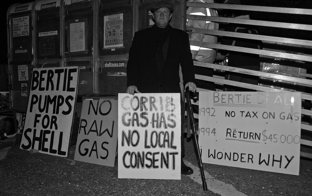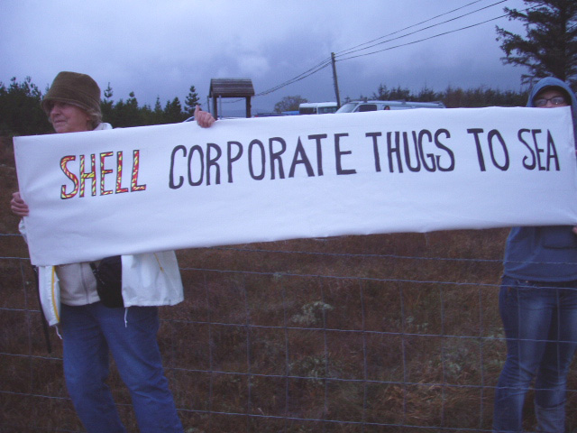 The state does not intend to see it and its multi billionaire chums get defeated by a few protestors . Shell itself regards the free state governemnt as little more than a compliant tribal cheif , and the state regards it as its duty to serve the interests of the British establishment and the yankee Landlords in a servile manner, just as Ray Burke and Des O'Malley could sell the future of Ireland to foreigners for a few baubles and blankets and perhaps a top hat . What we are witnessing in Mayo is colonialism in action and it will get a lot nastier as time goes on . If protestors cannot be bought off they will be physically beaten off and worse . This is a national issue that affects the future of every last Irish person . There should be a move to stop OReilly and Exxon Mobils theft too . A few protestors in Mayo cannot be expected to hold out indefinitely and the mass action capabilities of the unions hold the key to this .