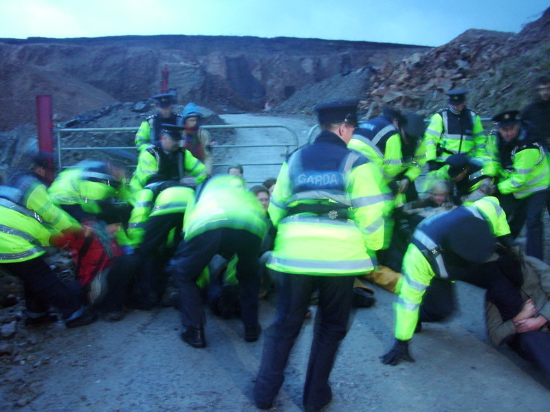 Shame on the Guards & their masters in Dublin! From Catalonia I send you the protesters of both a national issue and one with obvious global implications - sympathy & solidarity & encouragement. Keep going. In most parts of the world no-one gets to protest the Oil corps. Because the police lay into them or when they're attacked by the gangsters employed by the Oil corps to "protect their business" they turn a blind eye. In the beginning of all this I remember reading so many times comments of people in Ireland & beyond noting that at least the Rossport story was unfoldling in a democratic state one of the few places where rights of speech & assembly are supposedly established.......