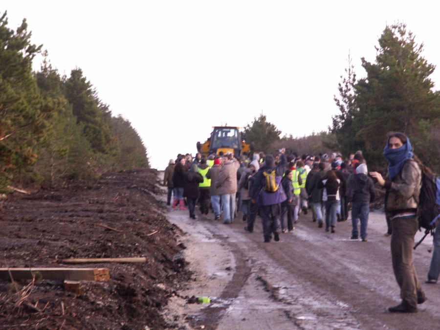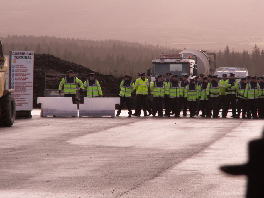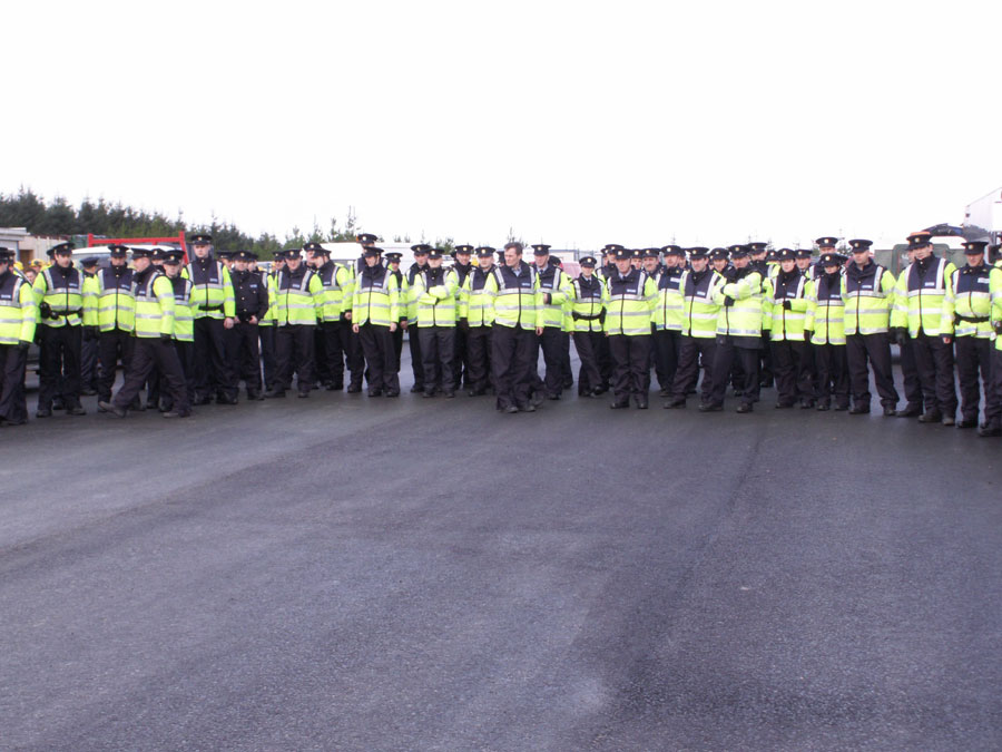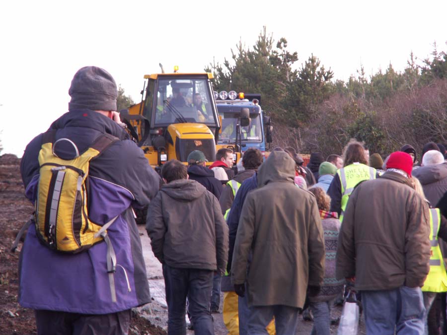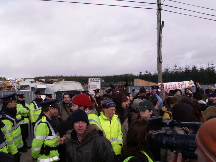 In the 2nd pic in the above comment a senior garda can be seen restraining another garda who had begun to drag out barriers to place between protestors and the exit to the site, other gardai stretched, hopped up and down and generally began warming up in anticipation of an order to use force to remove the protestors.