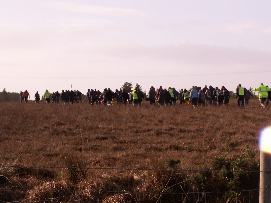 I wasn't aware of any headcount but estimated over 100 people crossing the bog with a further group of protestors gaining access via another entrance and a large enough group of stragglers at the back, an estimate of roughly "150" isn't too far off the mark.