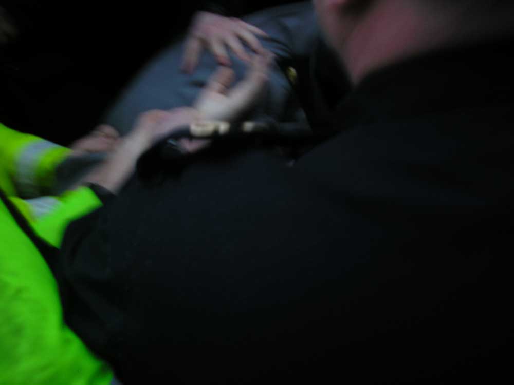 The picture below shows, side by a side, a section from an indymedia photo above and a photo that was widely printed in the corporate media on the right.