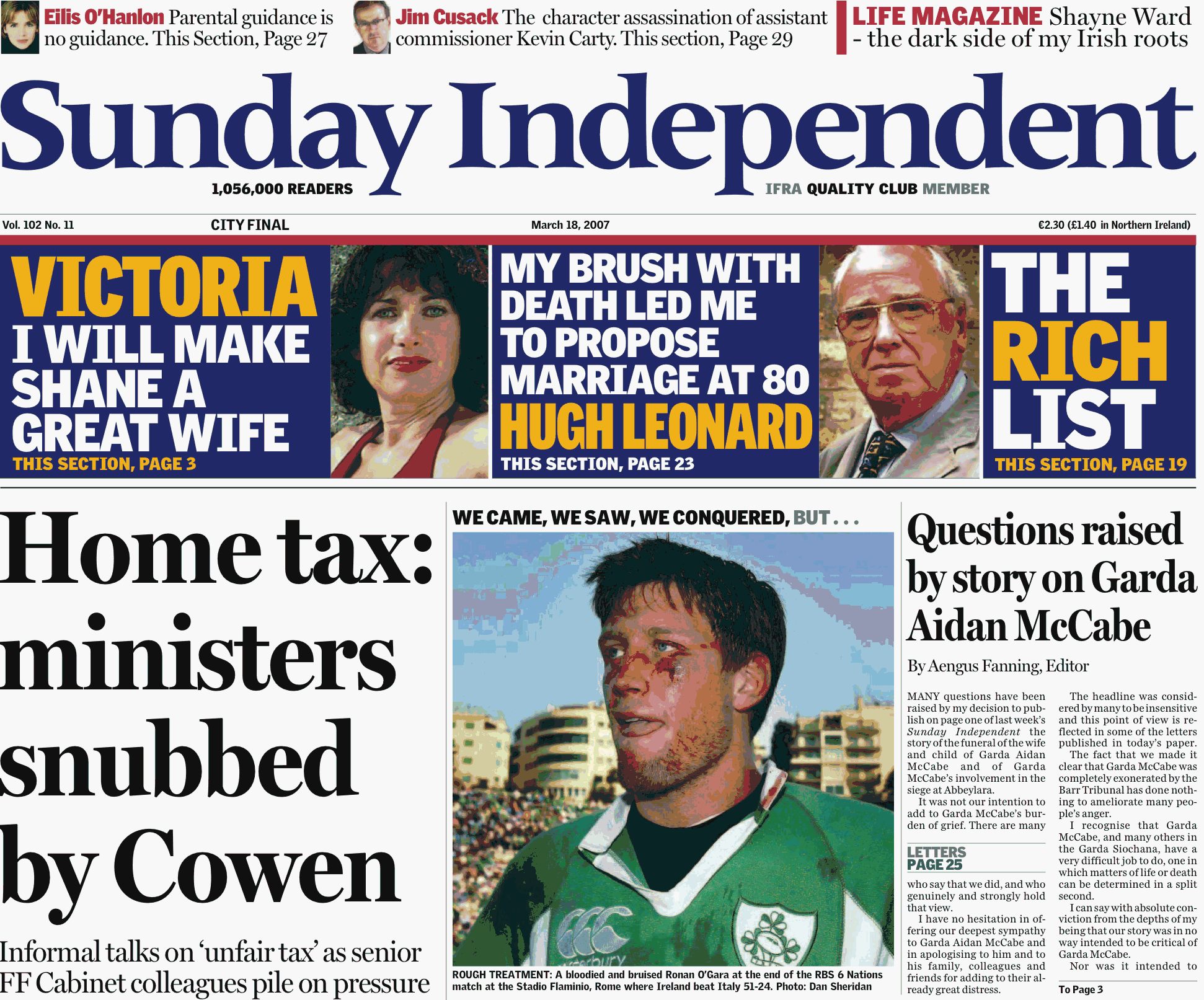 I deliberately make a decision not to buy the Irish Independent/Sunday Indepednet. Is there any particular reason why Mr. Sullen feels he must bombard me with it here on this site?