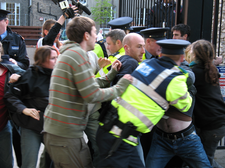I hope shell to sea listen to this. As above poster said good message,wrong place.. Focus on your plight with Shell with Placards with the appropraite message to inform passers by of whats really going on instead of foccussing on the gardia. Gardai scuffles are expected now but this picture report tells us nothing of why Shell must be stopped.