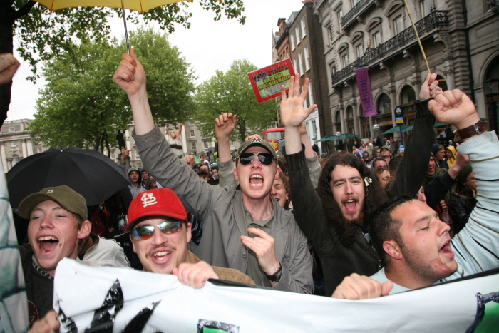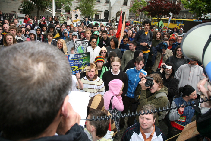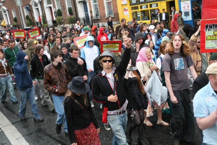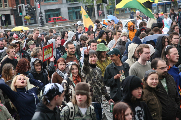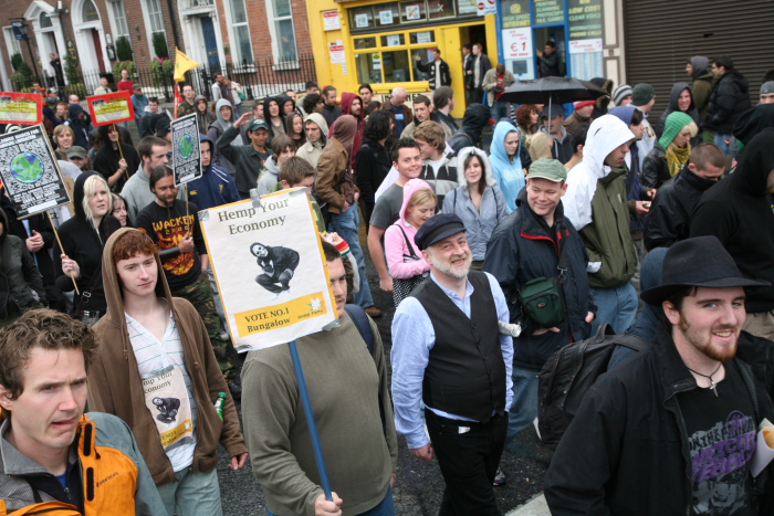 Brilliant march - 500 turned out despite the pissing rain. And they say stoners are non-political! Fair play to everybody who turned out. One of the most interesting things was the fact that there were more dublin accents on show than your average political march by far. And they say it's a middle class thing, not something that interests the working class. Fuck that. Everybody wants to be free.