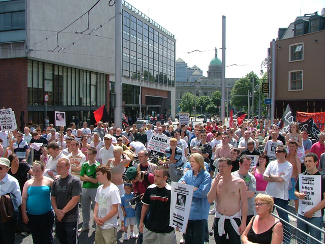 arrival st the station heard speachs from local TDs and deputy lord mayor, basically, stating that the garda explanation stinks and the urgent need for a pulic inquiry,