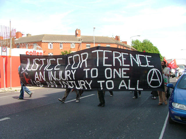 Agree about the blood boiling when you read about this (and the Moloney and other cases), but does the Sun Trib article have any information above and beyond that posted on Indymedia in the past? If you look at the links in the green box on the article you'll see in-depth interviews like this[1] in-depth interview by "Stoph" with Terence's mother and brother or this[2] moving interview by IMC Kevin with Laurence, one of Terence's brothers.