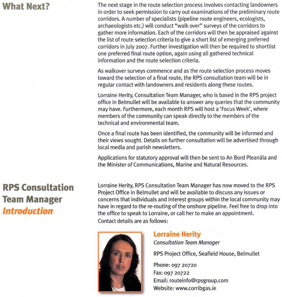 Quite the opposite of not being prepared to see the Corrib gas come ashore. The local community in the shape of the Shell to Sea campaign has been sending out a clear message since a least the time when the Rossport Five were jailed in the summer of 2004. That the location of this extremely hazardous chemical plant and it’s raw gas feeder line is the REAL issue and it’s current location, against the advice of the planning inspector Kevin Moor, needs to be changed to locate them both offshore.
