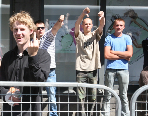 I've marched in alot of prides in the uk, here and america - ive managed the dyke march twice in new york and came across a good few anti gay protesters simply standing there watching us march by looking at us with their thumbs pointing down - and the banners are awful- its just that the hate is there and present in front of you.