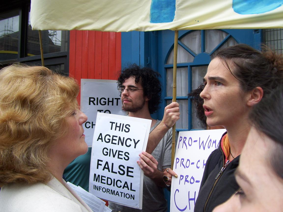 Choice Ireland staged a protest outside the Women’s Resource Centre, a rogue pregnancy counselling agency on 50 Upper Dorset Street on Saturday, 18th August 2007. Choice Ireland is a diverse group of Pro-Choice activists campaigning for free, safe and legal abortion services in Ireland.