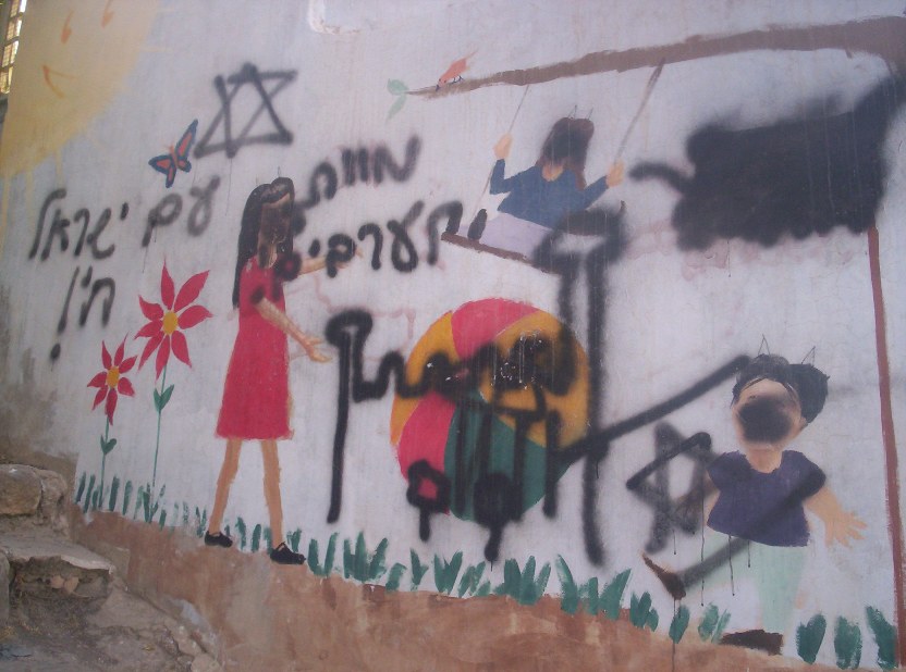 Anti+Arab graffiti near Qurtuba school - Tel Rumeida, Hebron