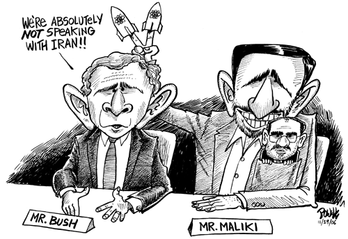 It is not a question of personalising this to GW Bush. Others are equally concerned and the issue is likely to be faced by the next President just as much. The EU Three are also concerned and France has been very outspoken of late. The idea is to prevent any war by deterring any Iranian possession of nuclear weapons by diplomatic pressure in the first instance. A breach of the peace in the region is thought to be much more likely with a nuclear powered Iran than without one. That is the rationale for the current diplomatic efforts at heading off an Iranian nuclear weapons threat.
