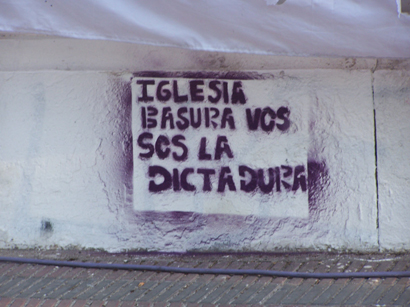 "Church, you Trash, you are the Dictatorship". Graffiti makes reference to the Church's collaboration with state terrorism.