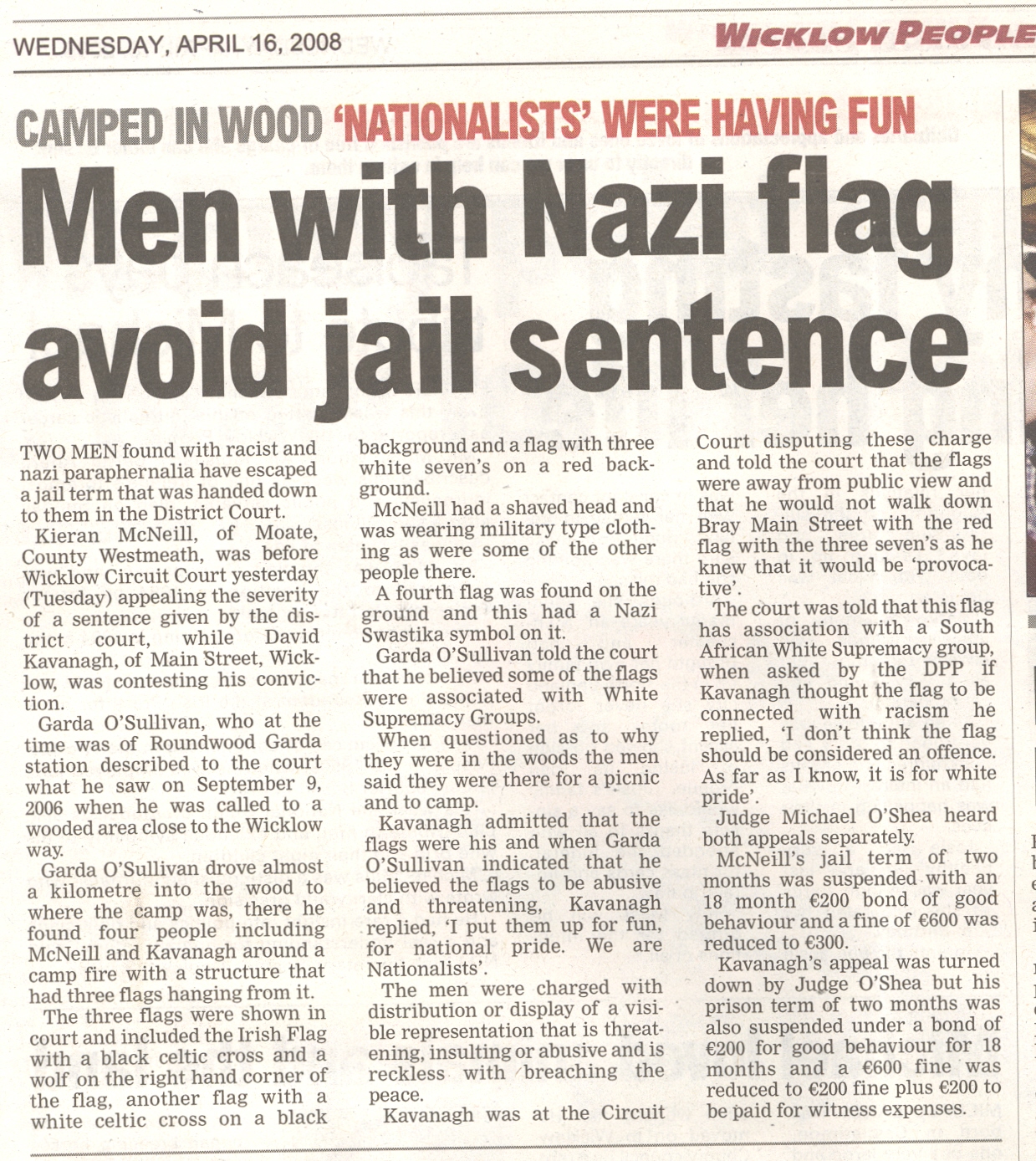 I "deliberately" go a mile off the main road regularly and would be horrified to discover this kind of a display where I hike, typically in areas like this. It is a public place in every sense of the word and these thugs deserved what they got. From my understanding one of them has reoffended recently in the Arklow area