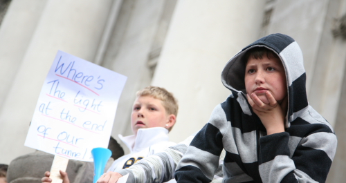 Hundreds take to the streets over the collapse of regeneration plans for some of the most marginalised communities in Dublin.