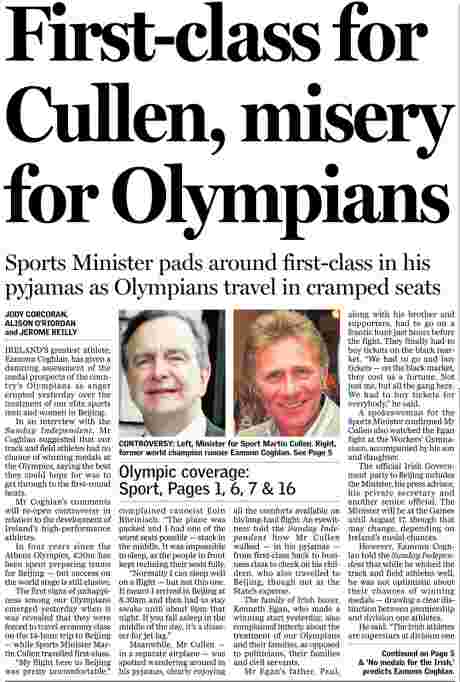 Maybe it is not the sort of anti government story Sir Anthony would want. Minister Martin Cullen padding around in his first class pajamas on his first class flight to China has vanished, replaced by: