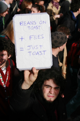 Some comments have been made on this page which attack students as "middle class" and says there are "sent to Uni by their "fat Cat" parents". I doubt you had very many home-owning or shareholding students on that demo. Anyone who tries to wedge a divide between the "real working class" and students clearly does not understand the role students play in today's world - University is no longer a prep school for the elite. It is a conveyor belt to produce an educated working class to labour for the profits of capitalism. The state does not charge us fees to exclude the working class (although some may have reason to celebrate that) but rather they do this so the ruling class does not need to pay to educate us and therefore they get more profits for less investment.