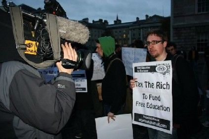 I agree with the last point that the SU leadership should not become the target of the FEE campaign but as a Trinity student and someone who was at the protest I'm very grateful Fee are active in Trinity as I have no idea what a silent protest was supposed to achieve. I don't like the idea of portraying the SU as one group and students as another. All students are members of the SU and it is our union and we do not want to see our union attacked or look ridiculous. The student union should look on this protest as an opportunity to begin a serious movement in the college to produce informative material that can challenge the claims of the pro fees lobby and get all students and their reps involved in the fight against the reintroduction of fees and cut backs in education. Personally I was disappointed that the President shook hands with O'Keeffe, the choice of a 'silent protest' and the lack of a serious campaign by the union leadership to bring out an even bigger crowd of students to the protest but we need to move forward now and I hope the reps will discuss what were the positives and negatives from the O'Keeffe visit. The enemy is the government, not each other and I'm sure if the union leads an active and militant campaign in future they will have the full support of all students.