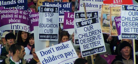 The INTO have ruled out the possibility of strike action. If so, then that seems like a bad idea. The only thing the government will read into it is that the teachers are not that serious about the protest and so this huge mobilisation of public protest may all amount to little more than a venting exercise which the government wil simply sit out. if teachers and parents don't demand a reversal of the no-strike strategy how can the cuts be reversed? Here's John Carr of INTO on 20/10/08: