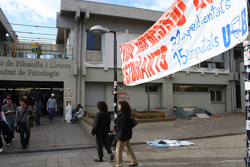 http://www.tancadaalacentral.blogspot.com/ is there website, all other uni buildings that are occupied have their own site, they are very well organised. Barcelona has a v strong tradition on horizontal organisation, see photos accompanying of long list of occupied unis, well over half are Catalan.