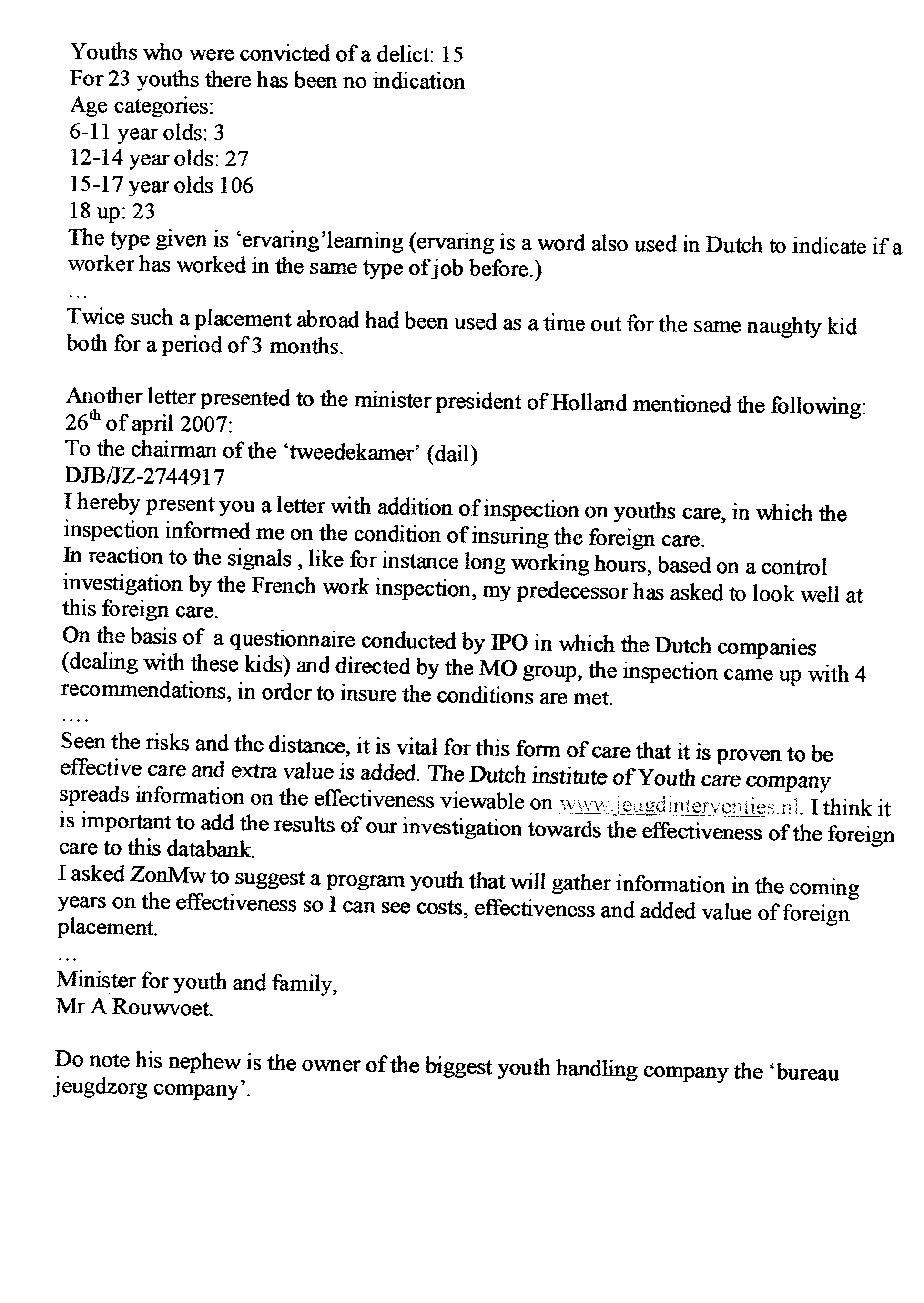 If it is known or said that children are abused for sex then the police should take this seriously and act on this or be held responcible should they refuse to do this sufficiently. International cases of children being locked up for decades by individuals make this a priority and the fact that within jeugdzorg children are abused and even made pregnant should be investigated immediately and the BJZ should be held responcible. This should be made law.