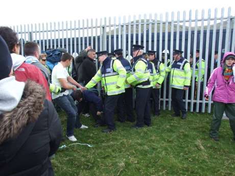 Protestors heading for the fences