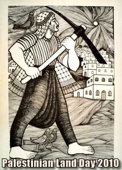 Land Day, March 30th, is an annual day of commemoration for Palestinians for the events of that date in 1976 when, in response to the Israeli government's announcement of a plan to expropriate thousands of dunams of land for "security and settlement purposes", a general strike and marches were organised in Palestinian towns in Israel from the Galilee to the Negev. In the ensuing confrontations with the Israeli army and police, six Palestinian citizens of Israel were killed, about one hundred were wounded, and hundreds of others arrested. It is commemorated every year by Palestinians and their supporters around the world.