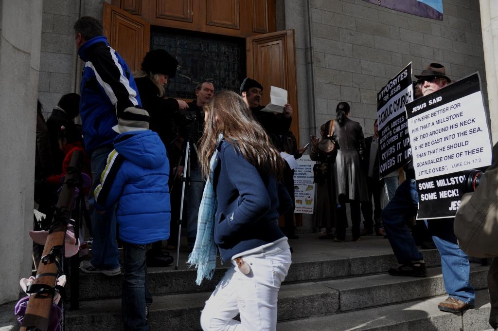 i was one of the people who was refused entry to the church on sunday to place a pair of shoes in memory of the victims who suffered at the hands of the people who has protected the people who commited crimes against our children as the bishops tell lies that it is in the hands of the police but still no charges have brought shame on the people that abused the who did make it to the altar i salute you and the people them the blood and suffering of our children are on your hands we will continue to fight to bring those who cover up this abuse to justice