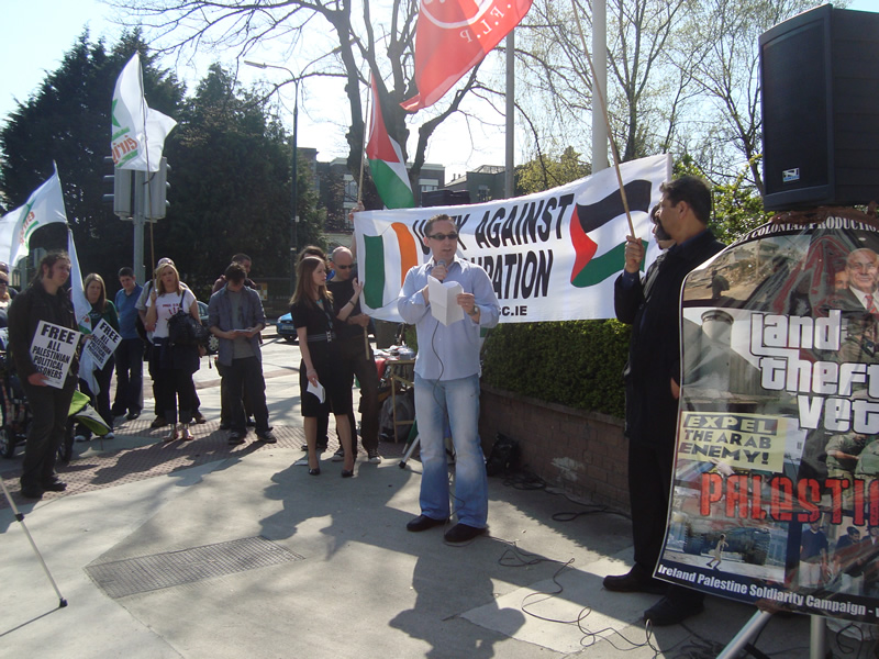 A large number of people turned out at 2pm on Saturday, 17 April, for the Palestinian Prisoners’ Day demonstration outside the Israeli embassy in Dublin. The protest was organised conjointly by the Ireland-Palestine Solidarity Campaign (IPSC) and éirígí (the socialist republican party formed in 2006), and the focus was on a call for the release of ALL Palestinian political prisoners imprisoned by the Israeli State - those 'convicted' in Israeli Military courts and those interned without trial under the 'Administrative Detention' regime.