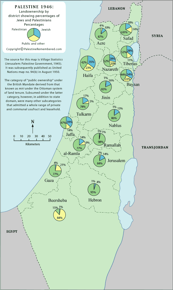 It shows that the Jewish population of Palestine legally owned less than 7% of the land at that time.